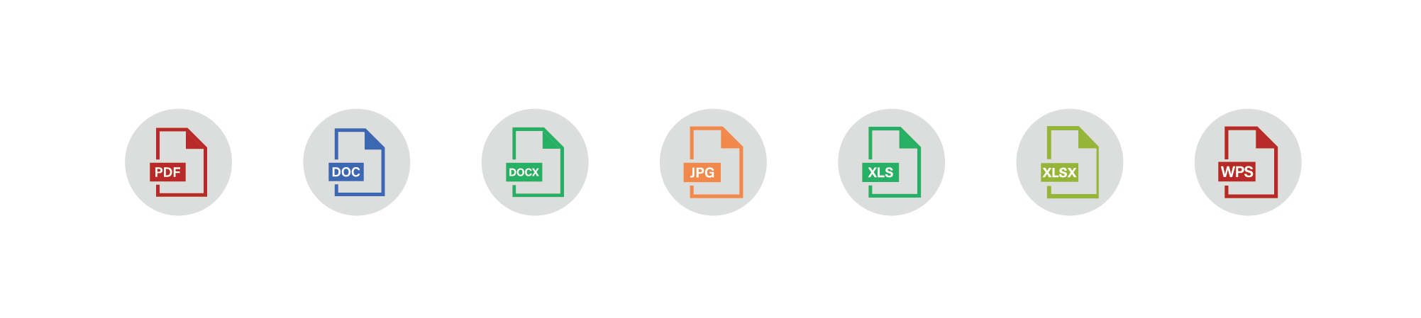 多文件格式支持:ofd、pdf、doc、docx、jpg、xls、xlsx、wps等文件格式签署,满足各类文件签署需求。