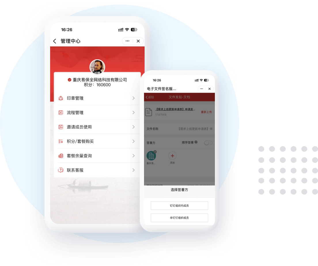 君子签在线电子合同签约平台,为解决中小微企业在传统线下合同签署中所面临的普遍性痛点,深度融合钉钉打造的一款标准电子合同签约系统; 主要为用户提供签约前、签约中、签约后三个环节过程中的身份认证、数字证书、电子合同发起、 电子合同在线签署、时间戳、区块链存证、电子合同管理、在线司法等服务; 与钉钉深度结合,签约消息钉钉实时通知,打通钉钉审批流,全流程不出钉钉,一站解决。