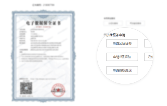 系统对接事前公证、事前取证,公证处与司法鉴定中心认可电子数据保全中心的电子数据保全技术,并高度认可电子数据保全中心的保全结果,直接免于走司法出证传统流程,可通过电子数据保全中心直接在线申 请司法出证
